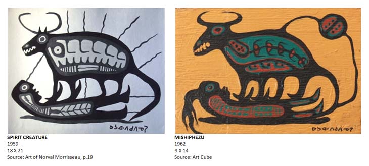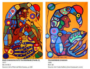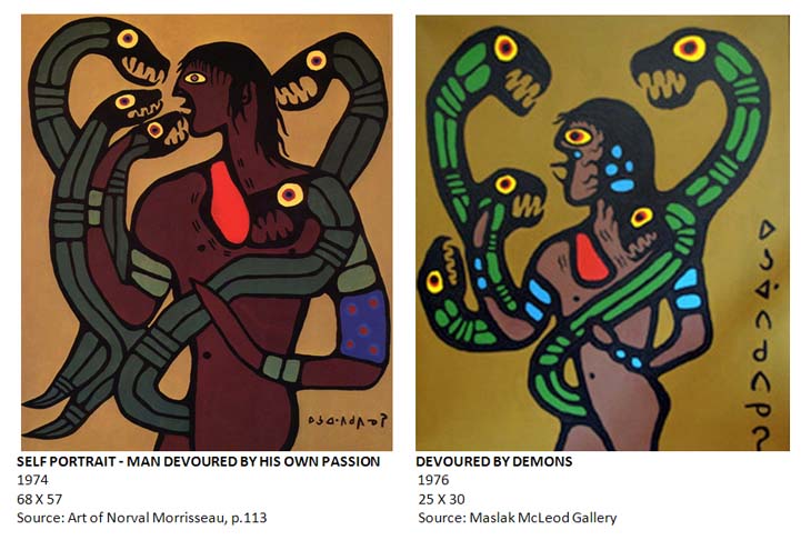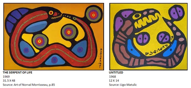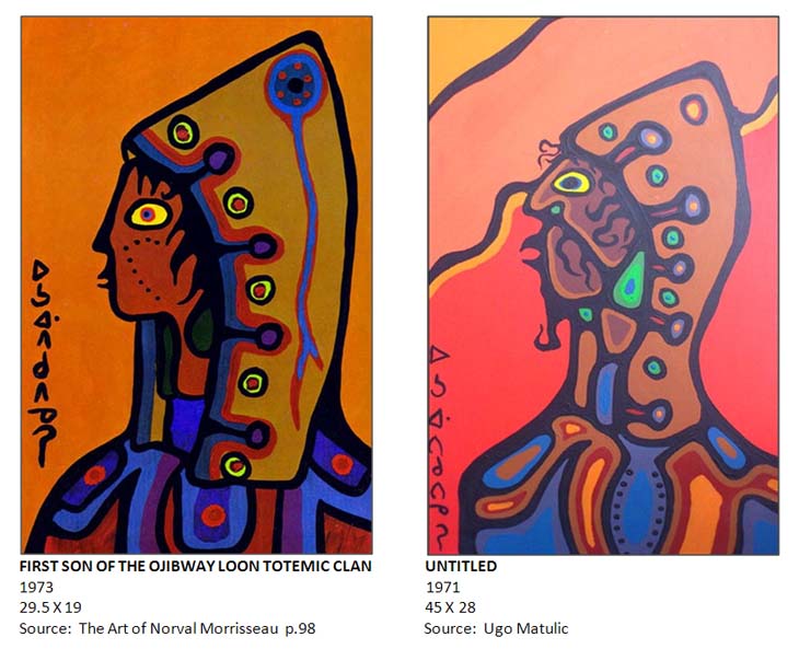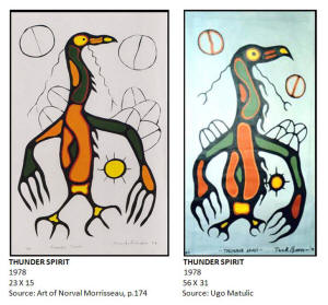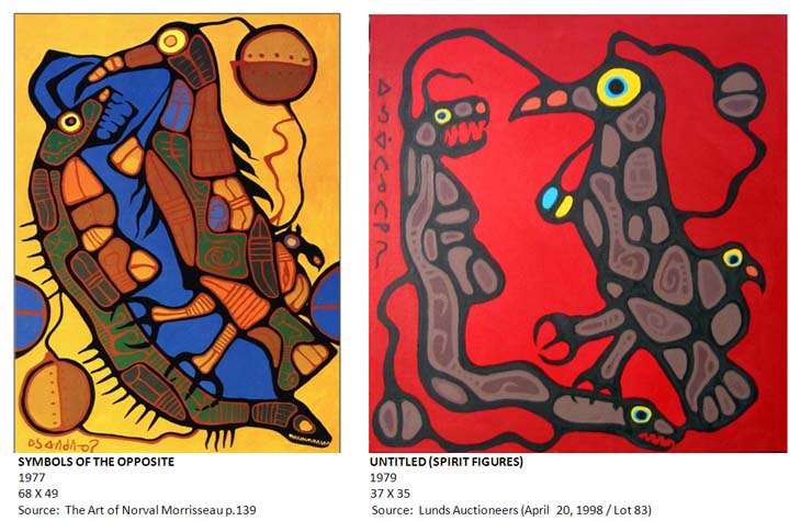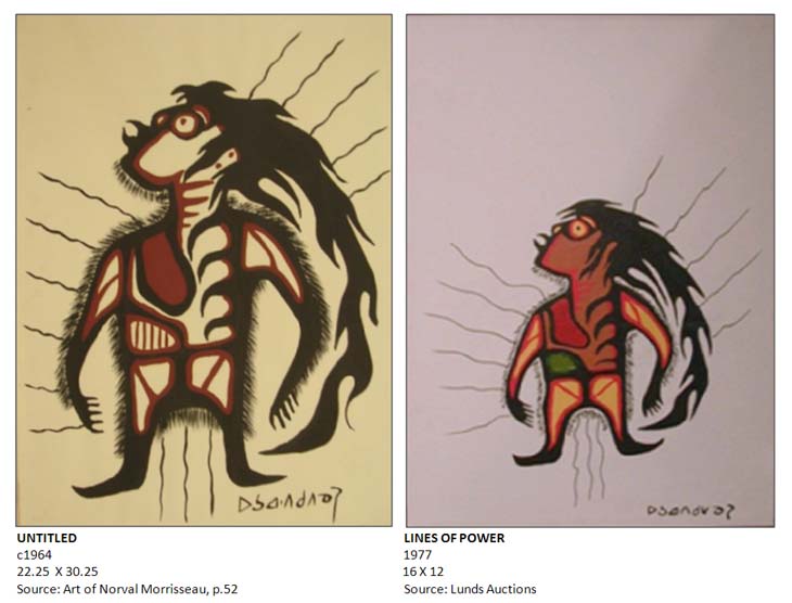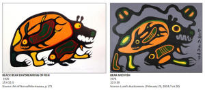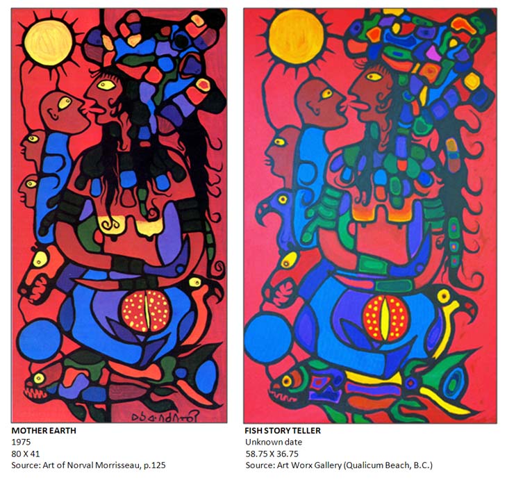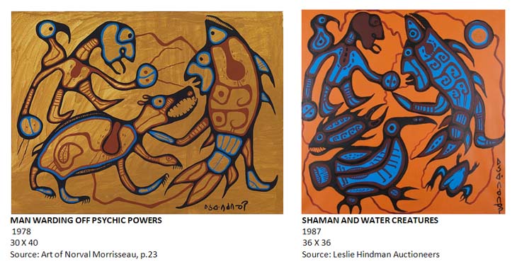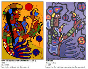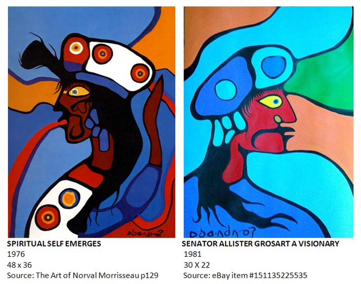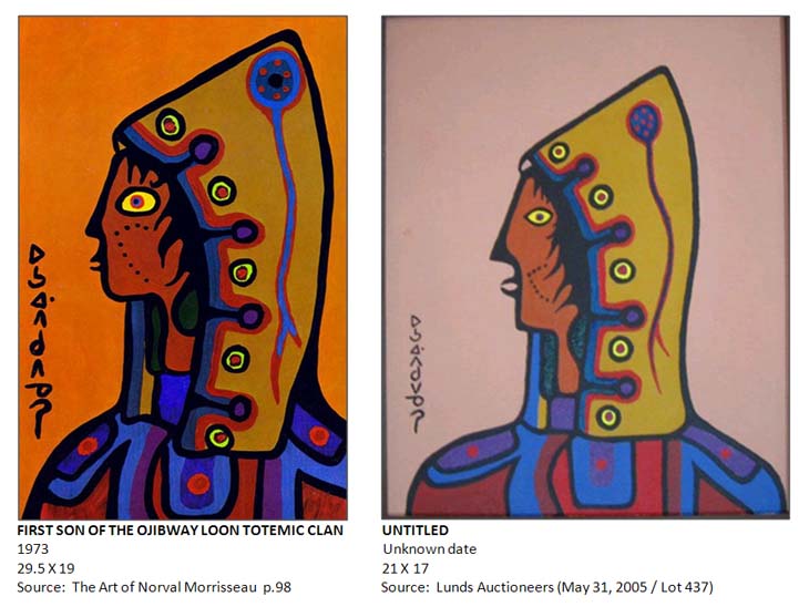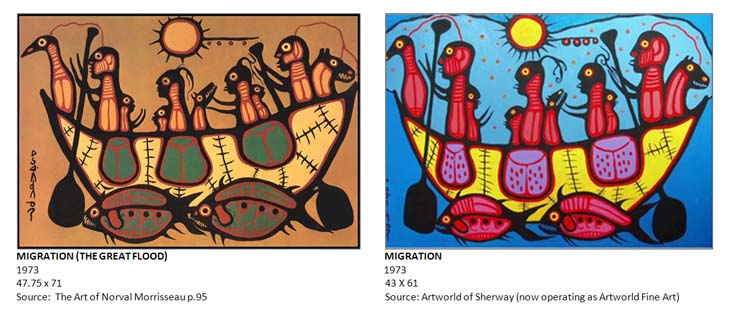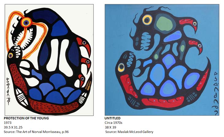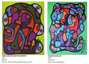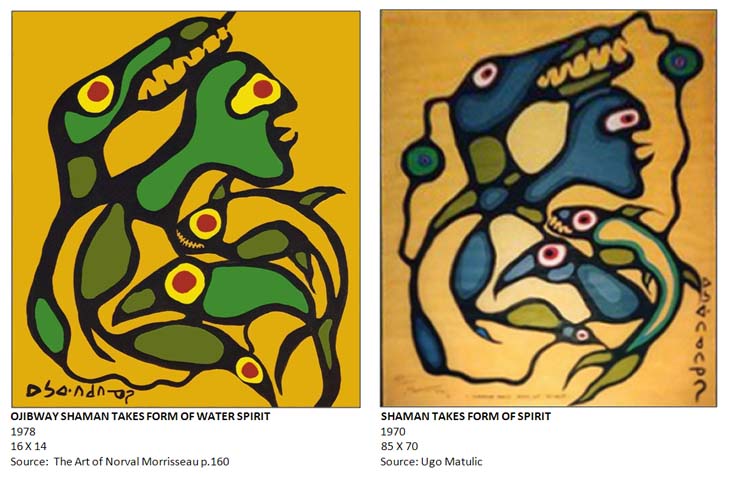 Side By Side Comparison Of Forged Norval Morrisseau Paintings