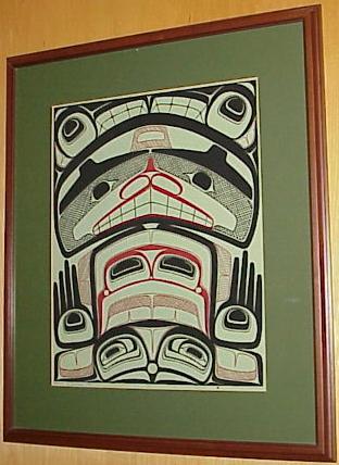 Chest End Design 13 1/2" x 17 1/2" / 1970 $1800 cdn This print is Davidson's first edition that was completely signed and numbered. From his studies of old bentwood boxes he created this design for the end of a storage box. Condition: Good |