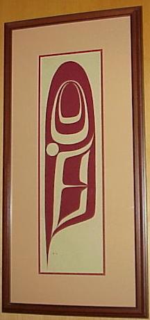 Feather Design #5 5 1/2" x 19" / 1972 $700 cdn This is one of five different feather designs that Davidson printed as an exercise in print making. He decided to design something simple and concentrate on perfect printing. A set of all five is very prized by collectors. This print is available only in biege. Condition: Good |