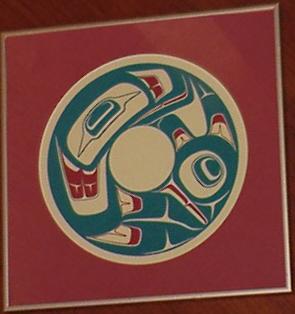 This print was developed from the designs painted on old spruce root hats that were made for Haida people of wealth and position.