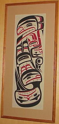 Raven with a Broken Beak 9" x 26 1/2" / 1971 sold The upside down head at the bottom is the Raven, who aquired a broken beak through his encounter with the blind fisherman's hook. The head at the top is that of the Fisherman. Condition: Good - a few very small spots, small flattened dog ear top left corner |