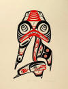 Robert Davidson was one of the first northwest coast artists to apply two dimensional design to limited edition prints. As a young artist he learned to cut his own screens and hand pull prints from them. His first editions were not numbered or signed. In 1970 he began numbering and signing his editions. He progressed from single color prints of traditional Haida crest designs to two color original images developed from his own work in wood and silver. Today Davidson, along with his jewelry and wood carving, produces multicolored prints of contemporary Haida images. He is considered amongst his peers as the premier artist of the northwest coast art form. |